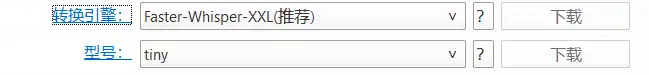 - 选择引擎(engine)及模型(model):只需要英文字幕,选Whisper-faster引擎 和 tiny 模型即可