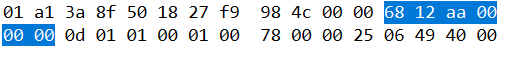 68 12 aa 00 00 00 0d 01 01 00两者相符,获取到的原始报文数据正确。