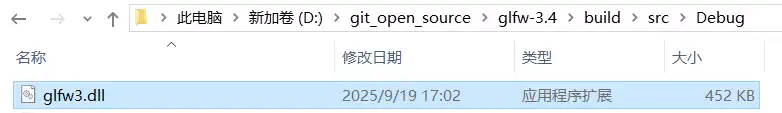 将编程生成的glfw3.dll拷贝到工程的lib下。