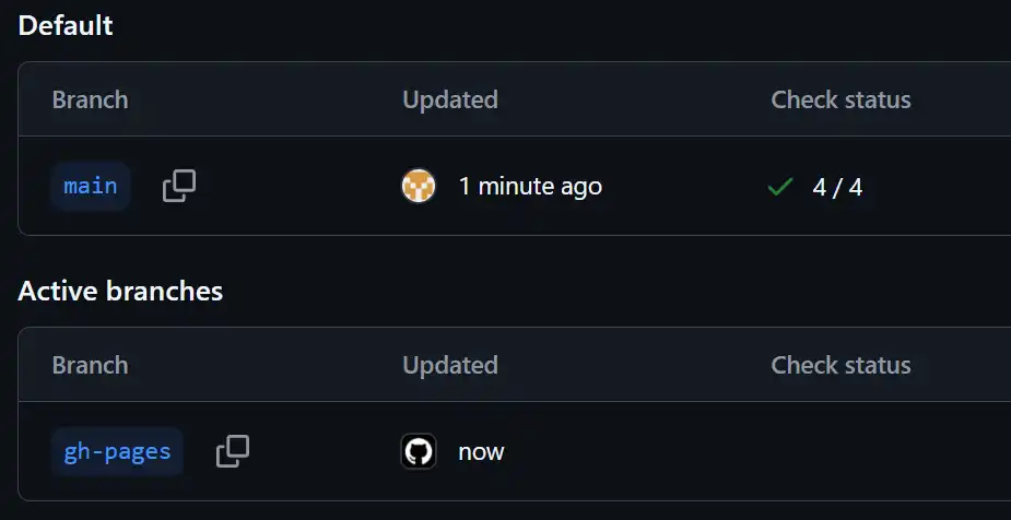 5. 设置Pages 使用的分支: 将main 修改为gh-pages